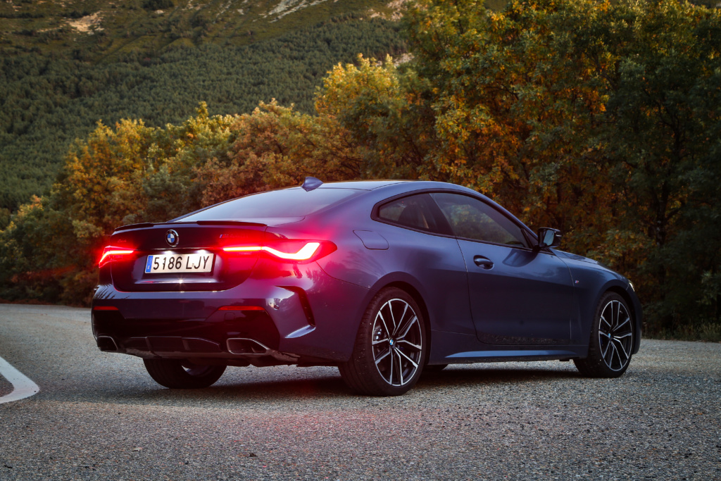 Este Serie 4 Coupé que ahora se comercializa es uno de los pocos vehículos que todavía transmite pasión como lo hizo en su día el 328. Era aquel un deportivo de los años 30 en el que los famosos riñones de la parrilla que tanto caracterizan a BMW eran extravagantemente alargados y con cinco grandes barras verticales longitudinales cada uno. Hoy, el nuevo Serie 4 Coupé ha vuelto a apostar por la desmesura diseñando unos riñones exagerados que BMW pretende convertir en la seña de identidad del modelo. A diferencia de aquellos, estos son activos y los paneles ocultos que integran se abren o cierran en función de las necesidades aerodinámicas o de refrigeración del coche en cada momento. La zaga te deja menos noqueada cuando la ves por primera vez. Su particularidad se centra en una doble salida de escape con un difusor central y el resto de los elementos dispuestos en horizontal.